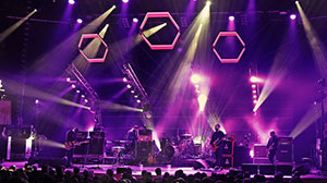 Certes, je n’étais pas venu pour Timber Timbre. Mais je n’étais pas venu pour la pluie non plus, et pourtant j’ai eu les deux. Et alors que les techniciens débâchent les amplis et accordent les instruments pour l’arrivée de Mogwai, j’en viens à me demander si le quintet Glaswégien (doté pour l’occasion d’un sixième membre aux percus et au violon) n’a pas vieilli. Le volume du son «de plateau » d’un des amplis guitare me fait immédiatement ravaler ma question et mes tympans. (NDLR : le son « de plateau », c’est le son de l’ampli, sans que celui-ci ne passe par les enceintes de sonorisation situées de part et d’autre de la scène.) Une brève install’ et 12 accordages plus tard, c’est finalement au tour de Mogwai d’arriver. (On notera la croix blanche sur le t-shirt noir de Martin Bulloch (Batterie) et sur l’ampli noir de Stuart Braithwaite (Guitare) ) Et de se présenter dans la langue de Molière : « Nous sommes Mogwai de Glasgow, Ecosse. », avant d’ouvrir le concert sur Heard About You Last Night, issu du dernier album en date, Rave Tapes. Rave Tapes qui, avec Hardcore Will Never Die But You Will (l’avant-dernier album) constitue 50% de la setlist de la soirée. Le concert n’est pas un chef d’oeuvre de symbiose artiste/public, le groupe est comme à son habitude quasi-immobile, se contentant de brefs « merci beaucoup » entre les morceaux, automatisme de plus. Le groupe semble être en « pilotage automatique » : une cohésion parfaite entre ses membres, aucune erreur, aucune hésitation, un jeu juste, sincère et authentique sur les morceaux dénués de samples (je pense à Friend Of The Night et sa légèreté divine, là.) Malgré un temps de jeu un peu léger (1h25 rappel compris, mais quel rappel!), Mogwai a déroulé, ne donnant pas une seule fois l’impression de peiner, au contraire de sa setlist. Mexican Grand Prix, ou Remurdered ne sont clairement pas au niveau des quelques éclaircies musicales de la soirée (Take Me Somewhere Nice, We’re No Here, ou le divin rappel Hunted By A Freak + Mogwai Fear Satan, même dans une version écourtée.)
